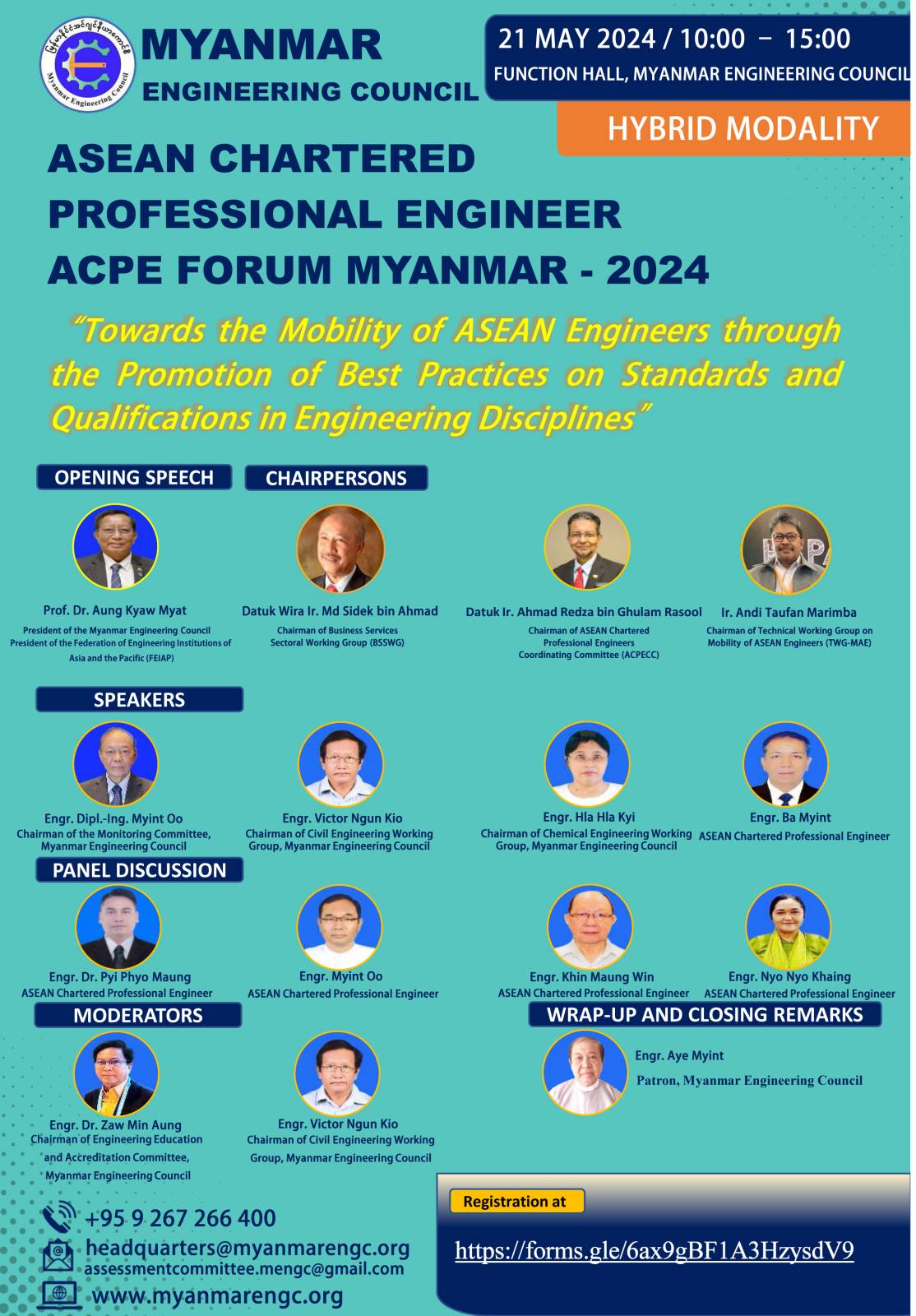 Presentations and documentation from ACPE Forum Myanmar 2024 held on 21 May 2024, Yangoon - Myanmar.