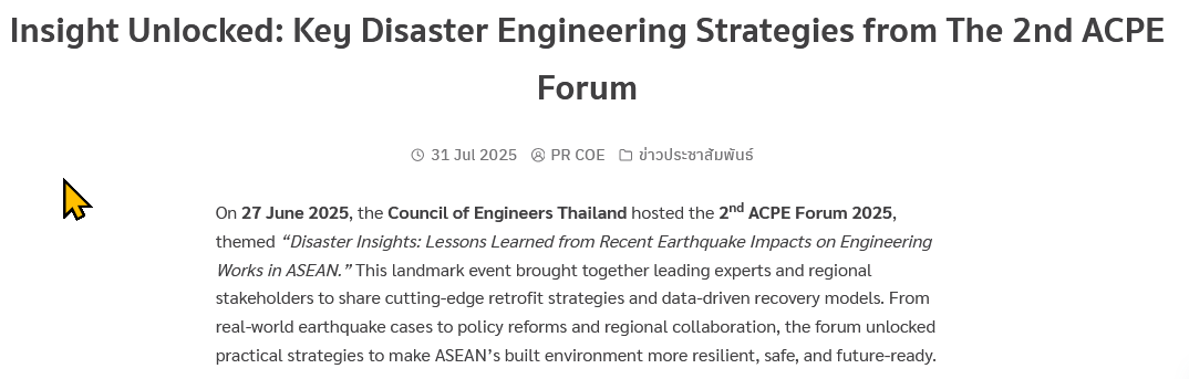The Council of Engineers Thailand are pleased to share the link to the key takeaways and summary article from the 2nd Thailand ACPECC...